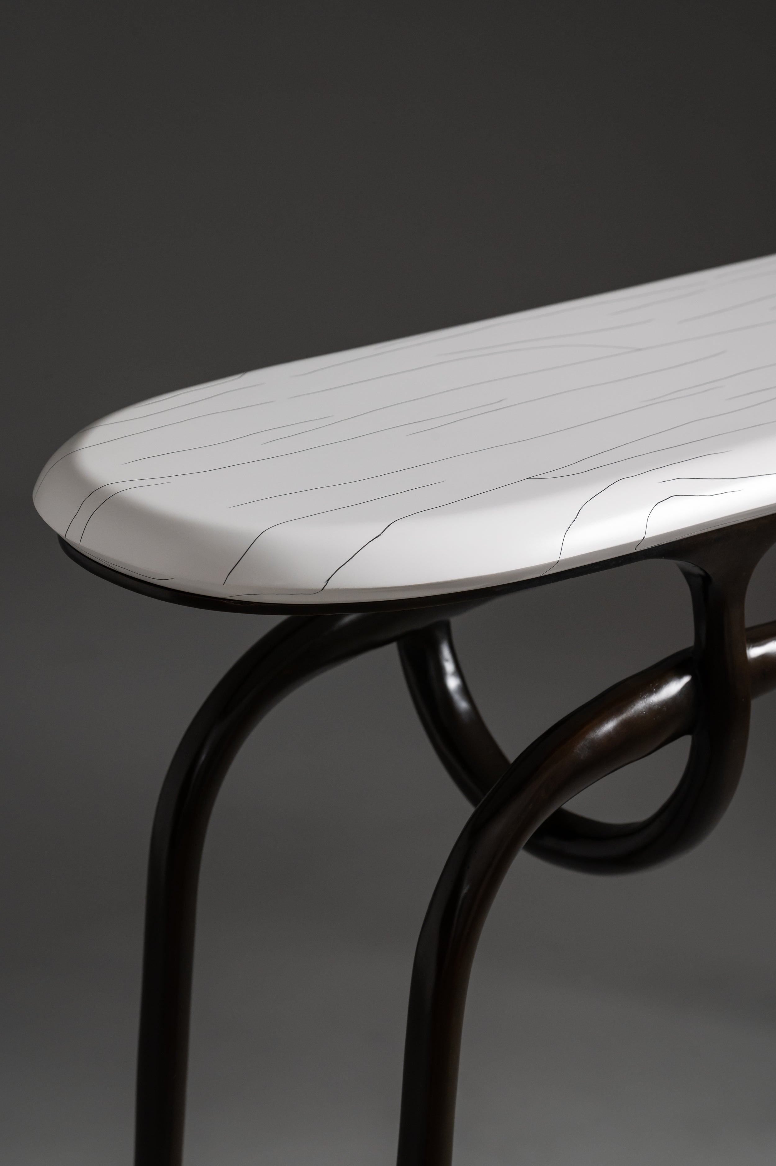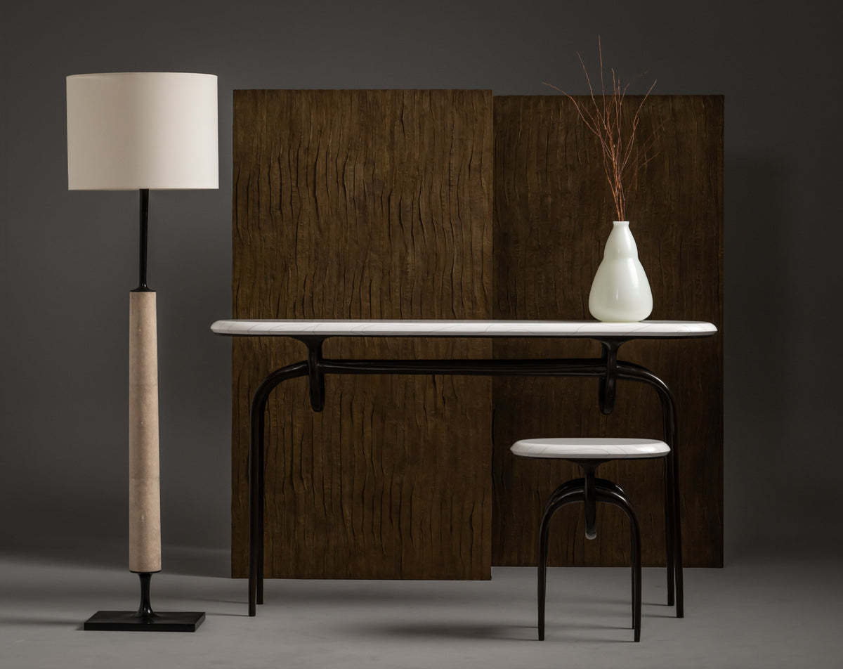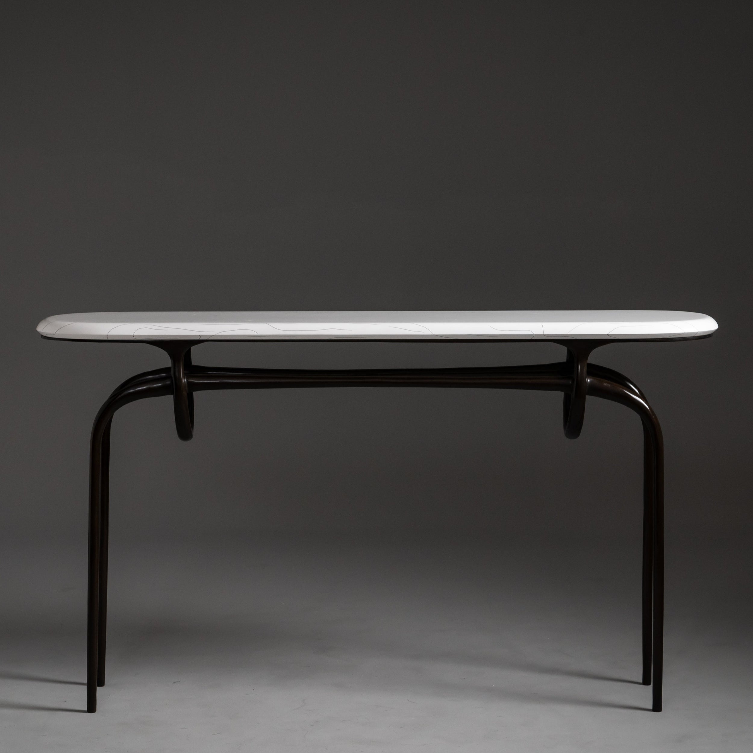 Lennon Console featuring solid bronze base and Gesso Top.