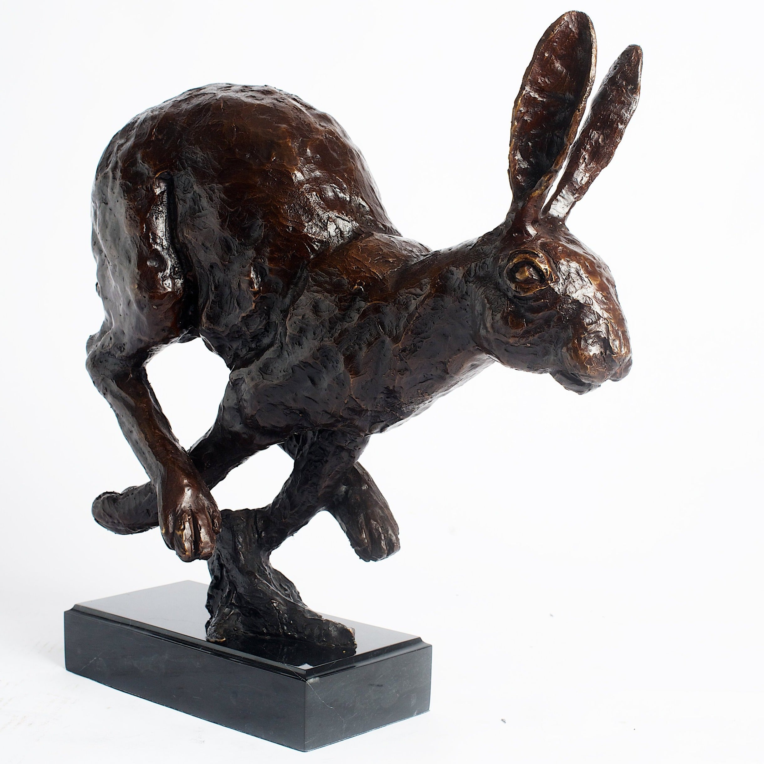Cast in bronze and eternally moving along at a loping gallop. Don’t call this powerful hare a bunny.